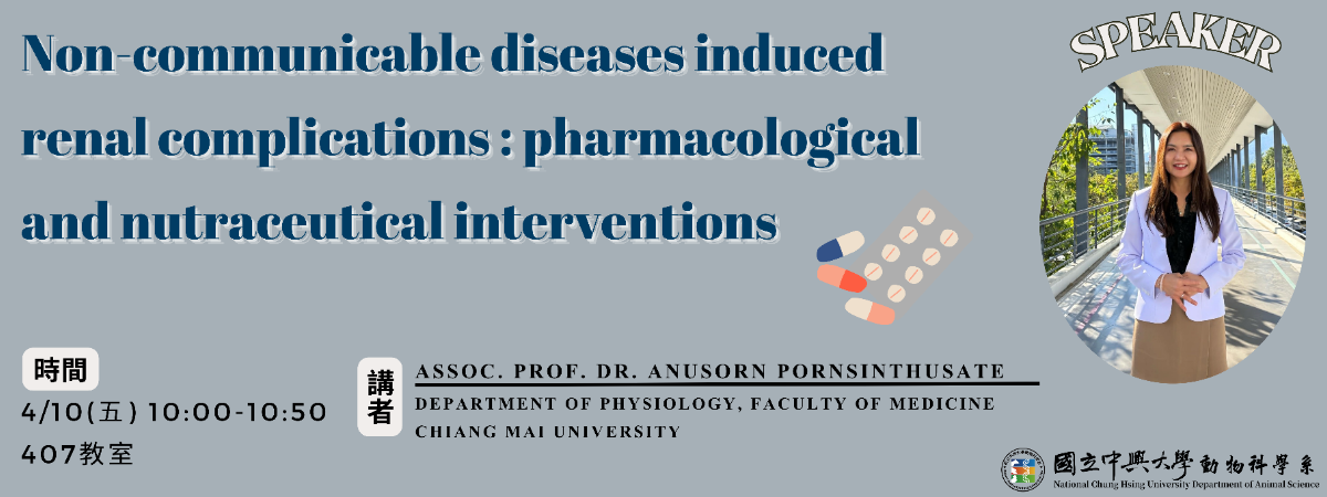 ●宣讀題目:Non-communicable diseases induced renal complications: pharmalogical and nutraceutical interventions