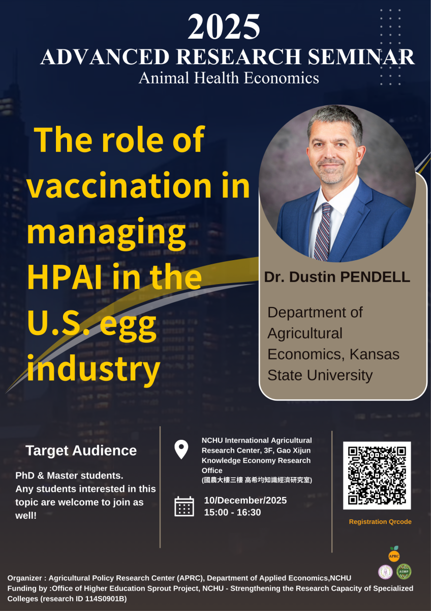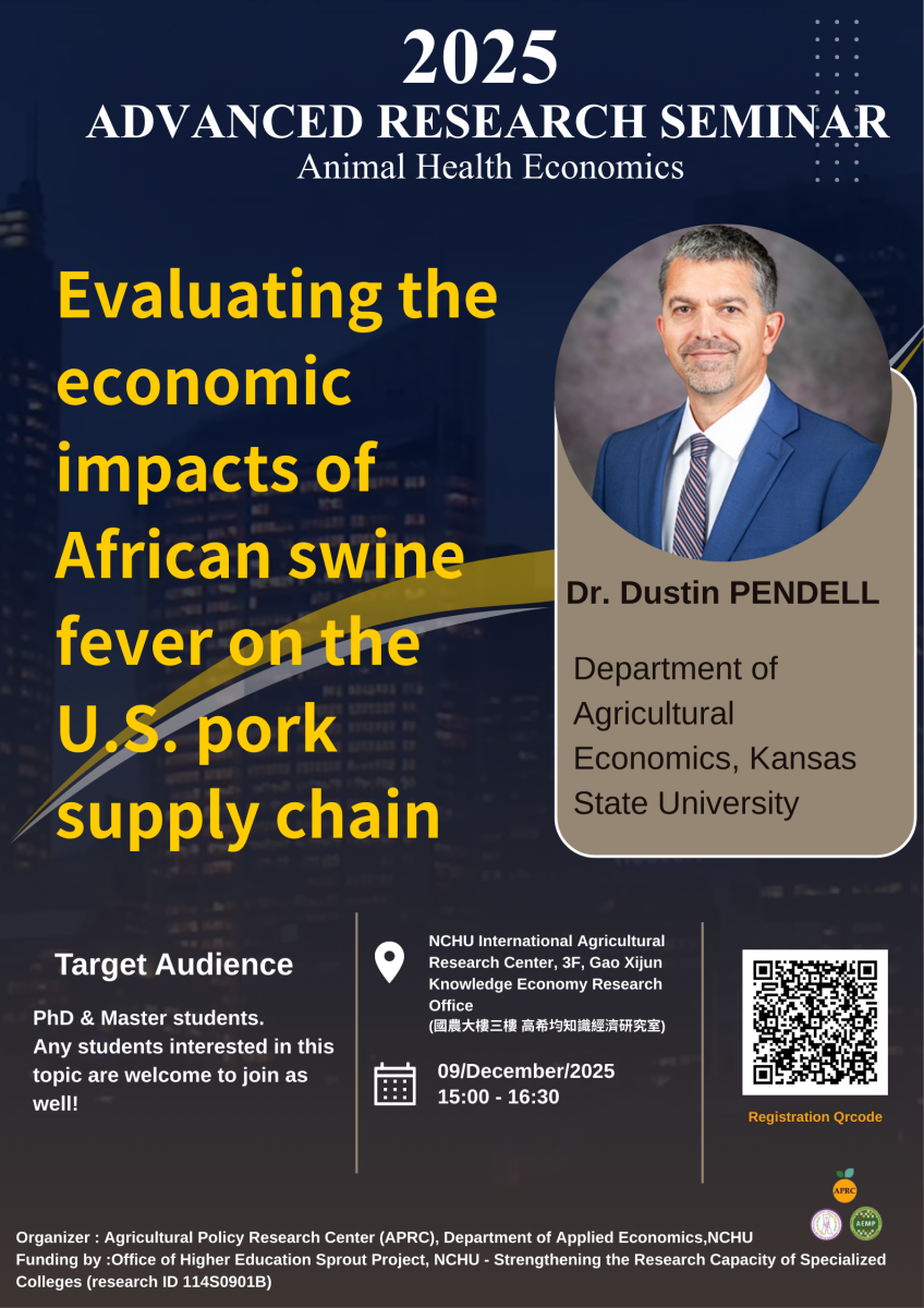 講題:非洲豬瘟對美國豬肉供應鏈之經濟影響評估